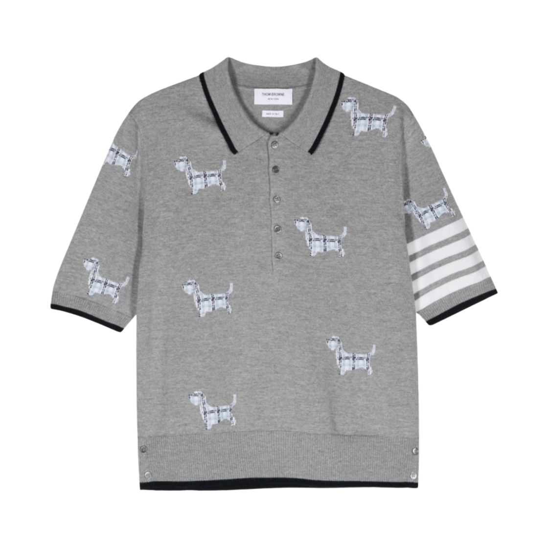 Thom Browne Hector 4-Bar Short Sleeve Polo Light Grey