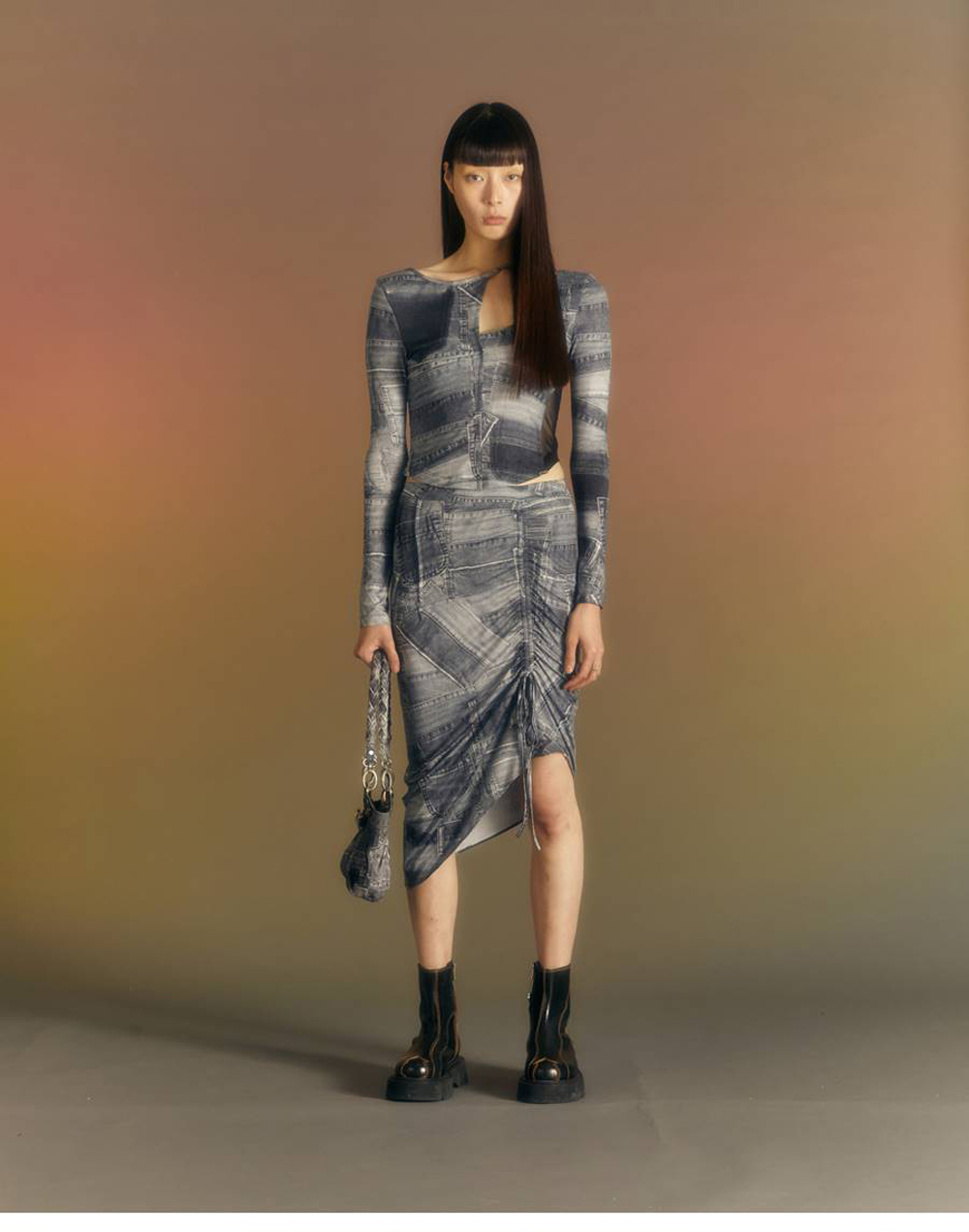 ADSB 앤더슨벨 우먼 아냐 패치 프린트 스커트 블랙