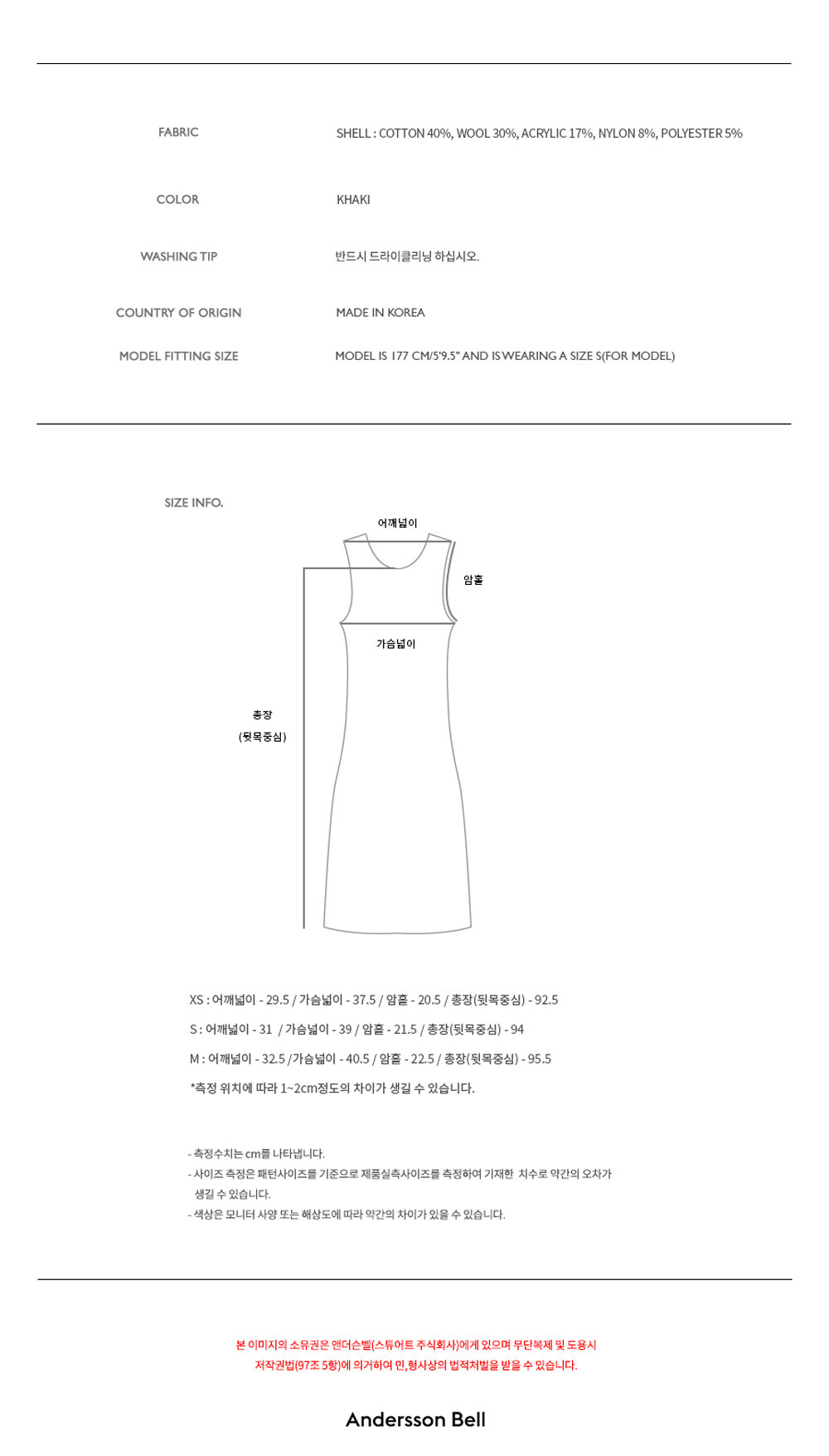 ADSB 앤더슨벨 우먼 그런지 슬리브리스 니트 원피스 카키