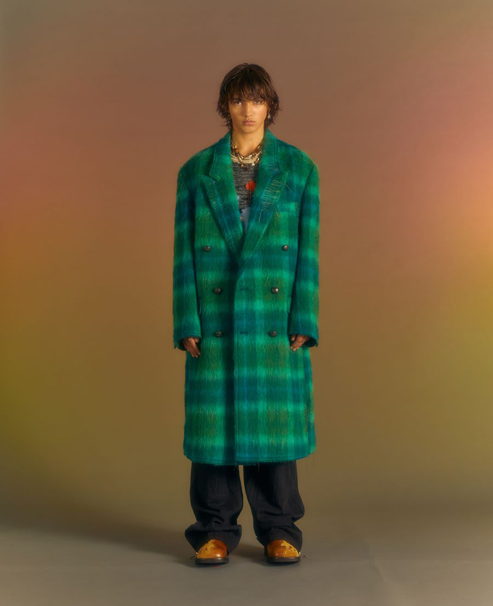 ADSB 앤더슨벨 모리안 더블 브레스티드 코트 그린 블루