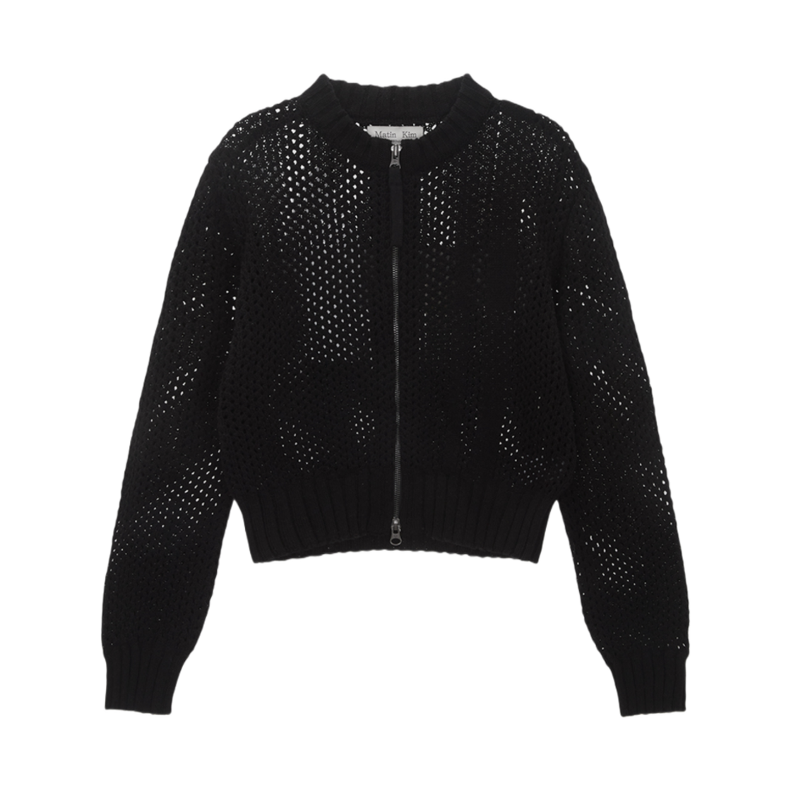(W) Matin Kim Back Logo Jacquard Knit Zip Up Black