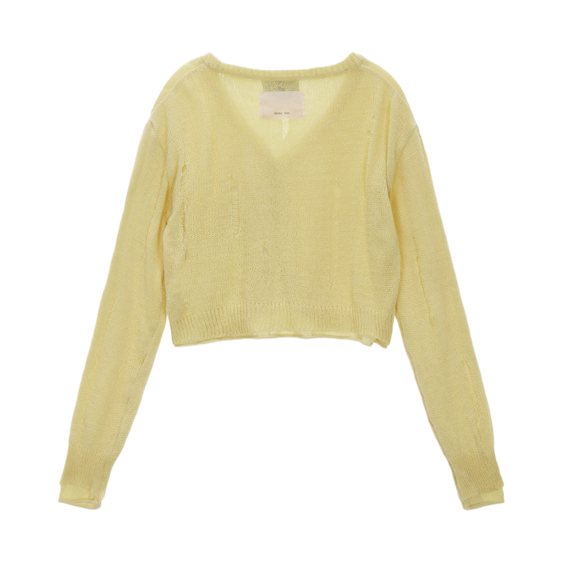 (W) Matin Kim Layered Damage Crop Cardigan Light Yellow