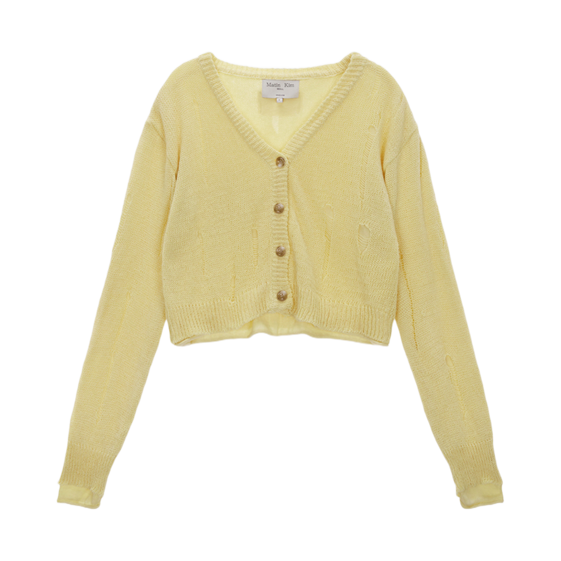 (W) 마뗑킴 레이어드 데미지 크롭 가디건 라이트 옐로우