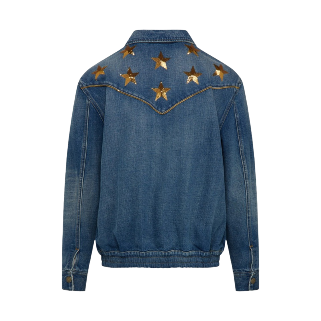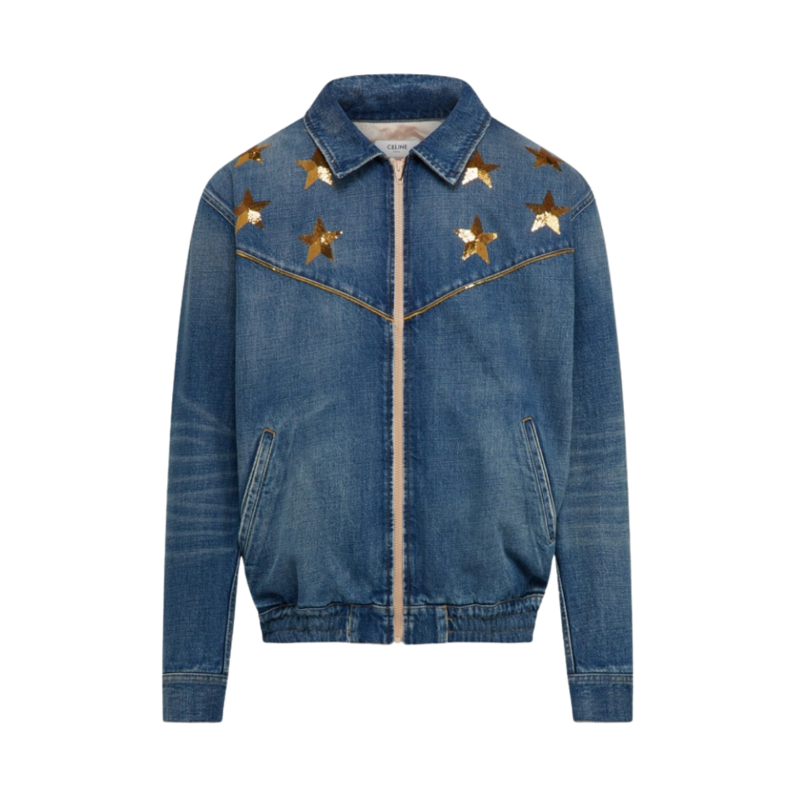 Celine Star Embroidery Teddy Jacket in Union Wash Denim