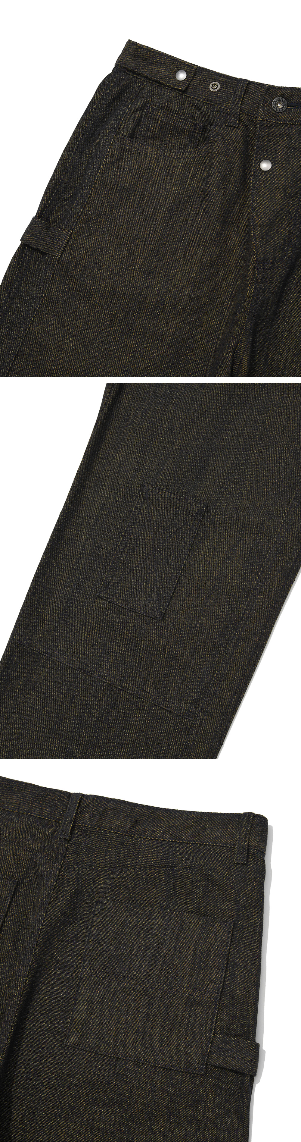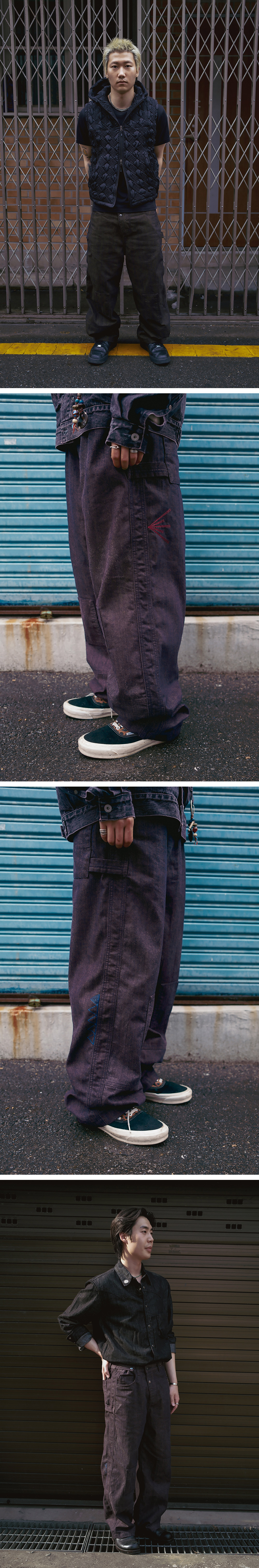 - 스튜디오 촬영 환경 및 모니터 해상도에 따라 제품 이미지와 실제 제품 간의 컬러 및 원단감의 차이가 있을 수 있습니다. - 데님 제품 특성상, 세탁시 이염 발생의 우려가 있으니, 반드시 단독 세탁 또는 드라이클리닝 하십시오.