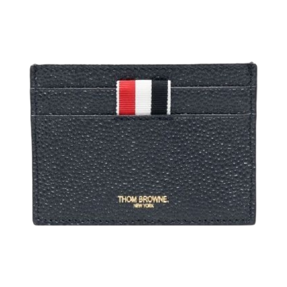 Thom Browne Pebble Grain Leather 4-Bar Stripe Card Holder Navy