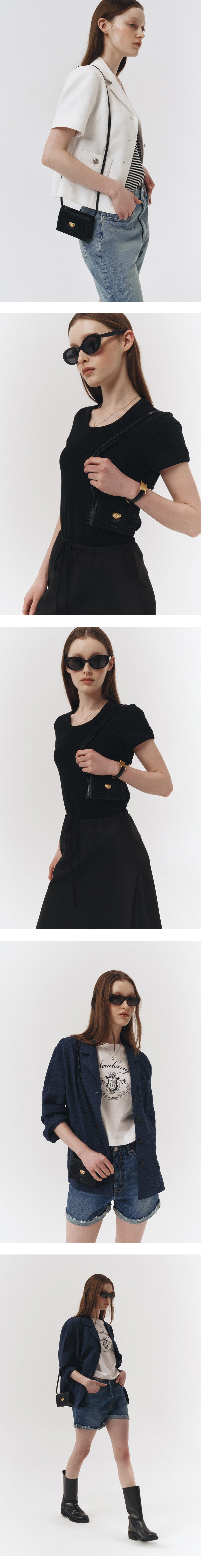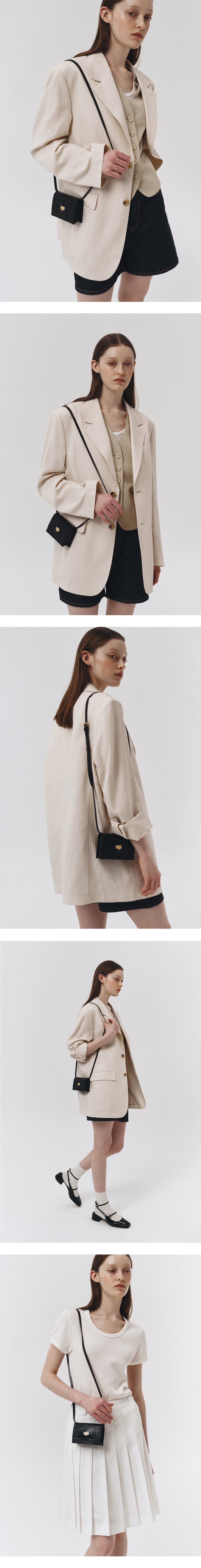 프레피룩의 '페니로퍼'에서 영감을 받아 제작한 마이크로 백입니다. 끈 길이 조절이 가능한 스트랩으로 벨트백, 크로스백으로도 다양하게 스타일링이 가능합니다. 카드와 간단한 소지품을 수납할 수 있는 사이즈로 제작되었습니다. 크로커다일 텍스처를 재현한 가죽으로 고급스러움을 더했습니다. 앞면에 던스트에서 직접 개발한 코인 디테일로 제품의 완성도를 높였습니다.