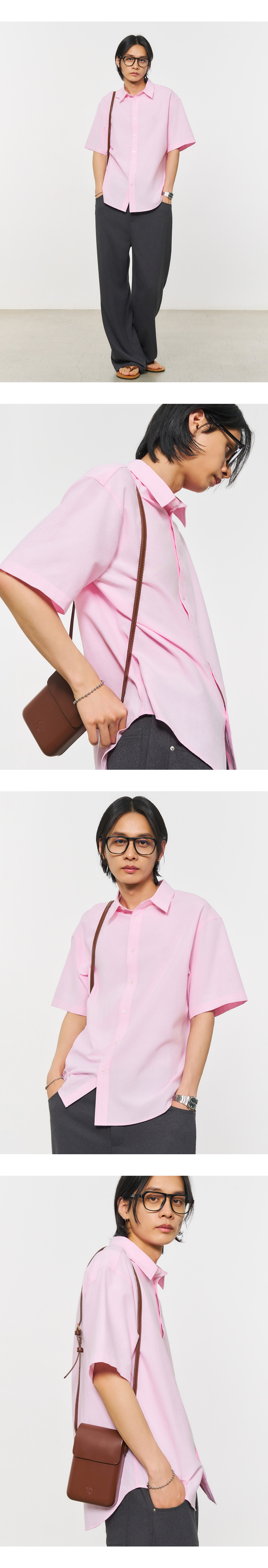 제너럴아이디어 유니섹스 베이직 옥스포드 하프 셔츠 핑크