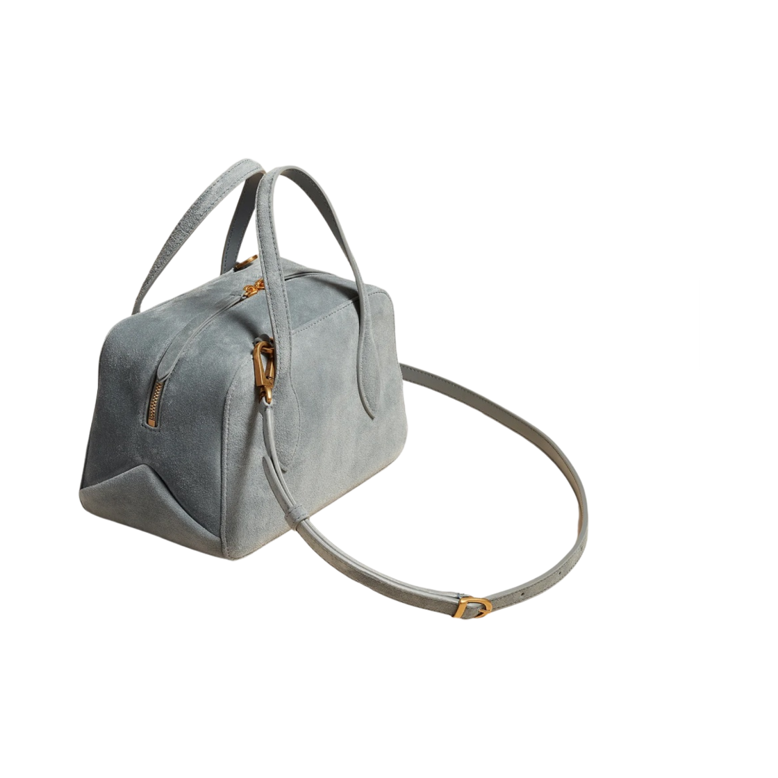 Khaite The Small Maeve Crossbody Bag in Calfskin Suede Lead