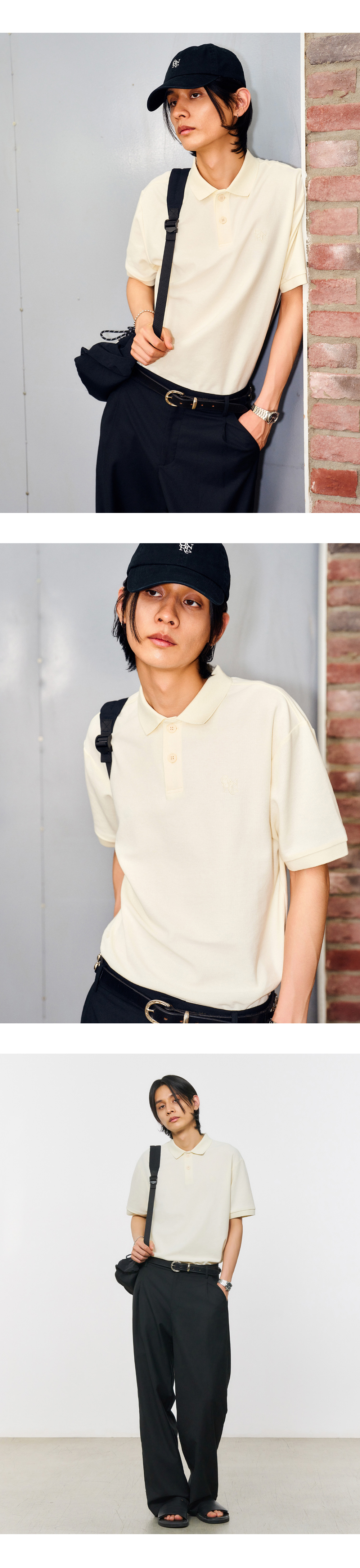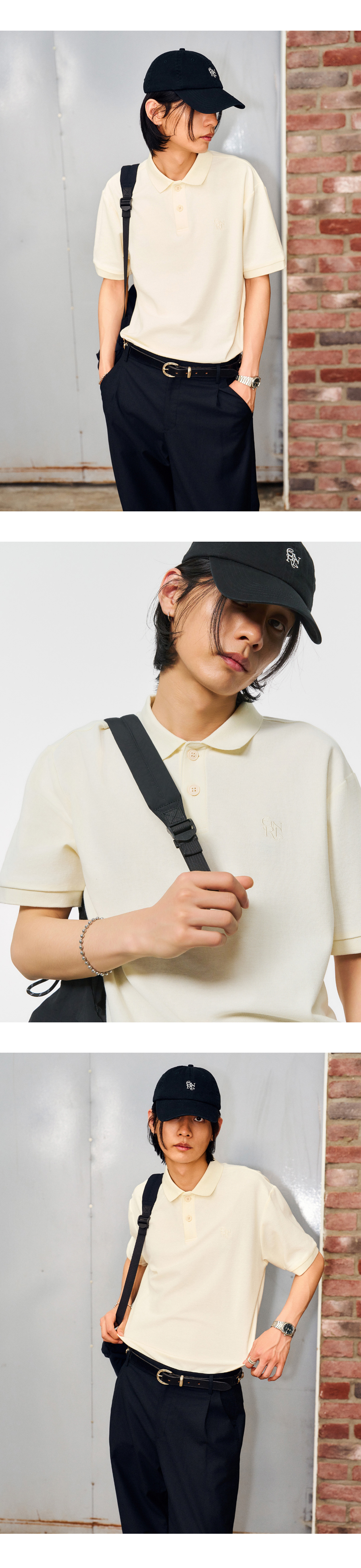 제너럴아이디어 유니섹스 솔리드 폴로 반팔 티셔츠 크림