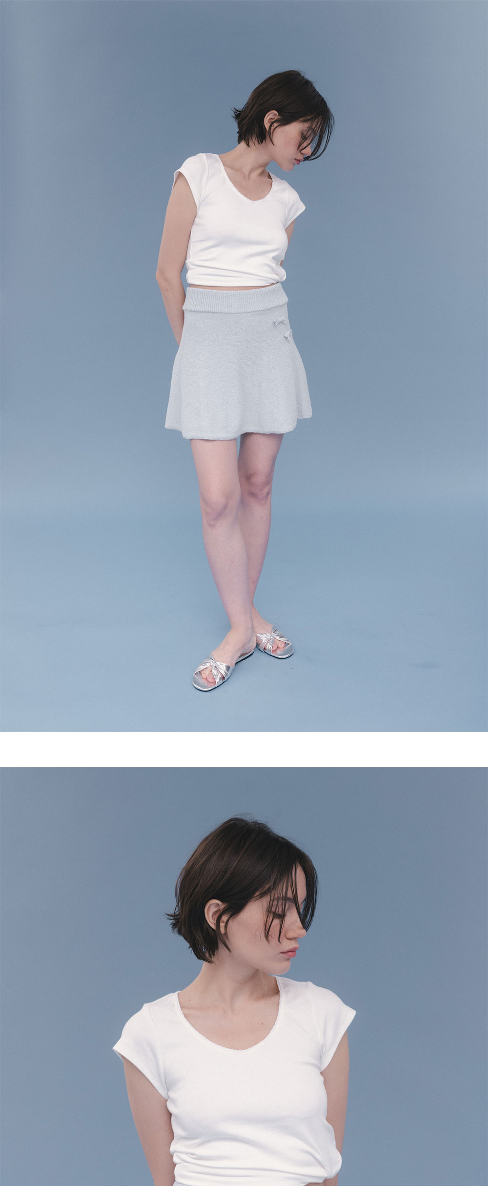 Tannat T/T Ribbon Flare Knit Skirt Skyblue