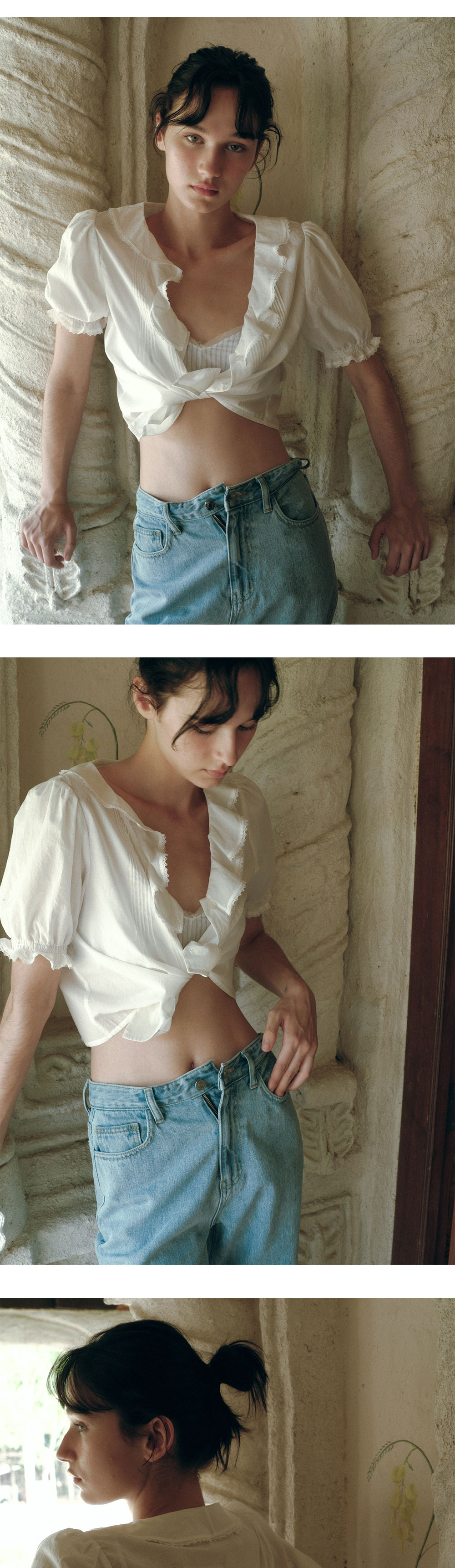 [예약 배송] 타낫 웨이브 셔링 블라우스 화이트