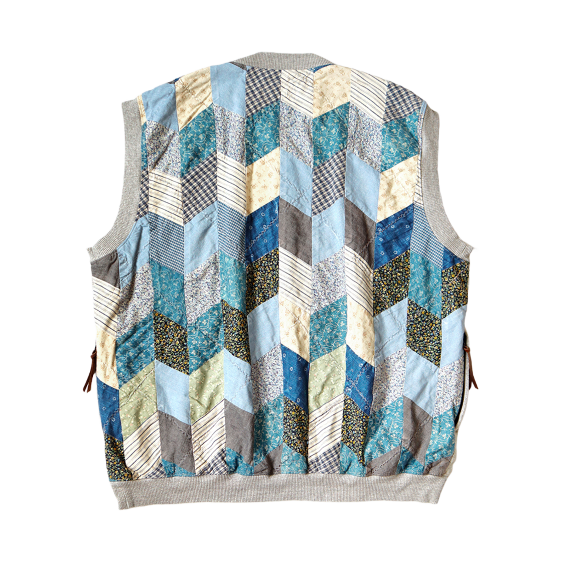 Kapital Top Fleece x Yabane Quilt 2 Tone Big Vest Gray Indigo