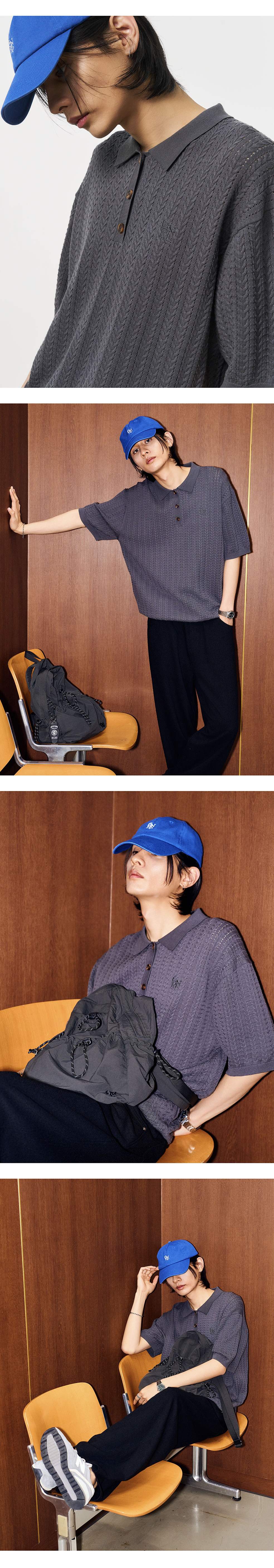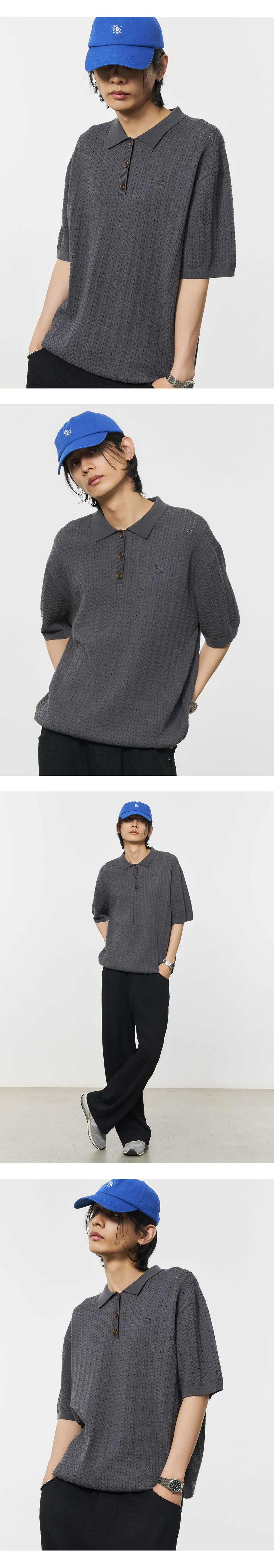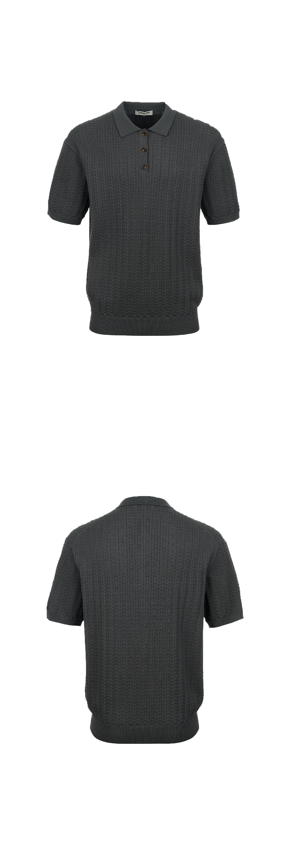General Idea Man Punching Cable Polo Half Knit Charcoal