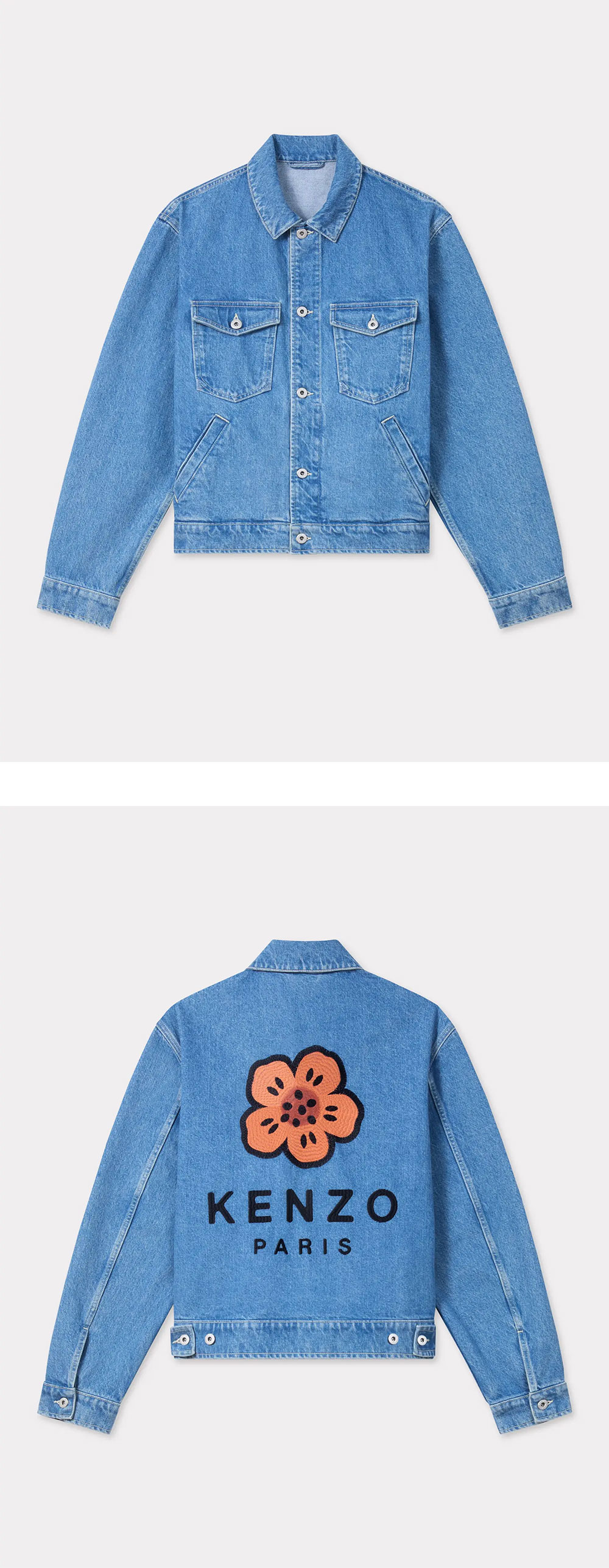 겐조 트러커 자켓 보크 플라워 스톤 블리치드 블루 데님 - 24FW