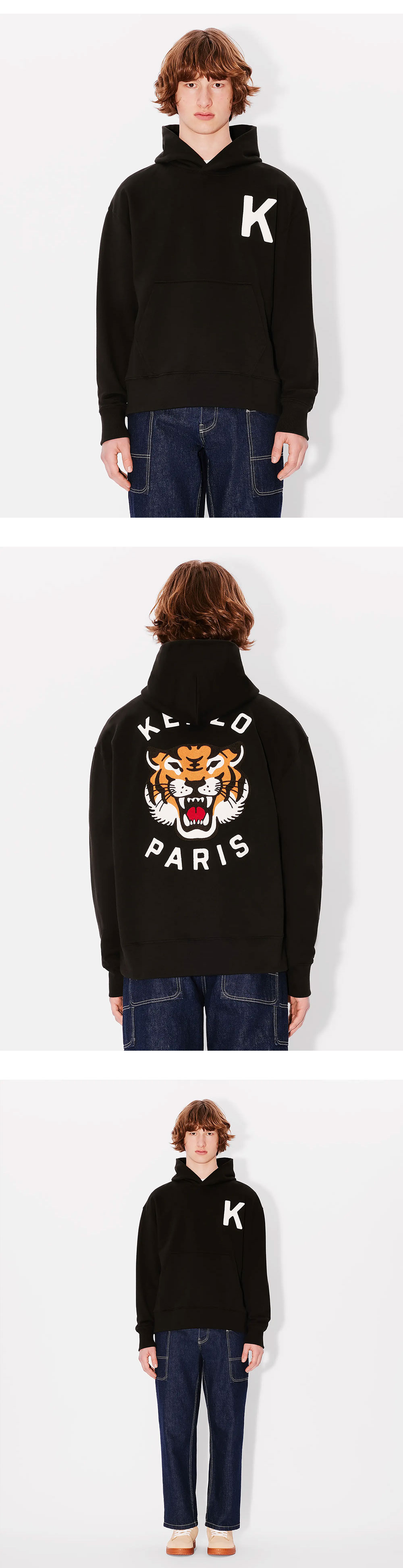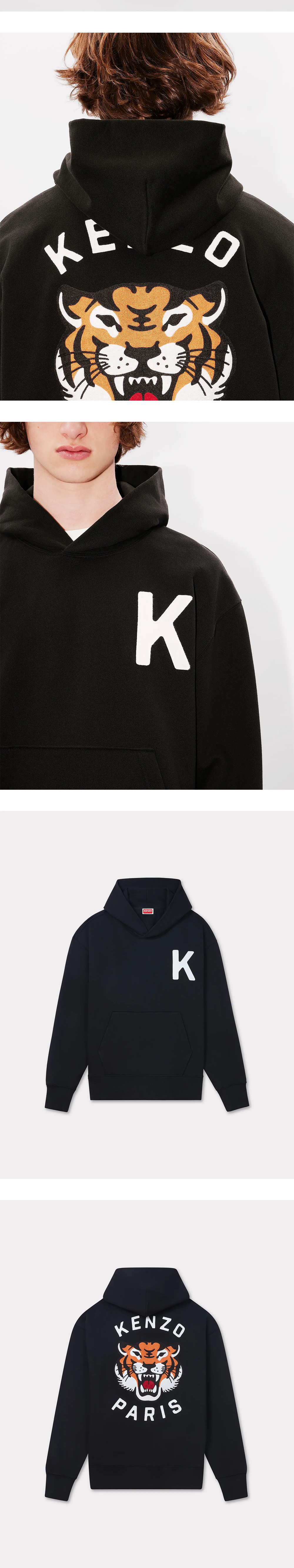 겐조 럭키 타이거 오버사이즈 후디를 소개합니다. 가볍고 부드러운 소재의 유니섹스 제품입니다. - 유니섹스 - 전면 'K' 엠블럼 - 체인 스티치 자수 기술 적용 * 여성 모델 신체 스펙 : 175cm / 착용 사이즈 : S * 남성 모델 신체 스펙 : 185cm / 착용 사이즈 : M