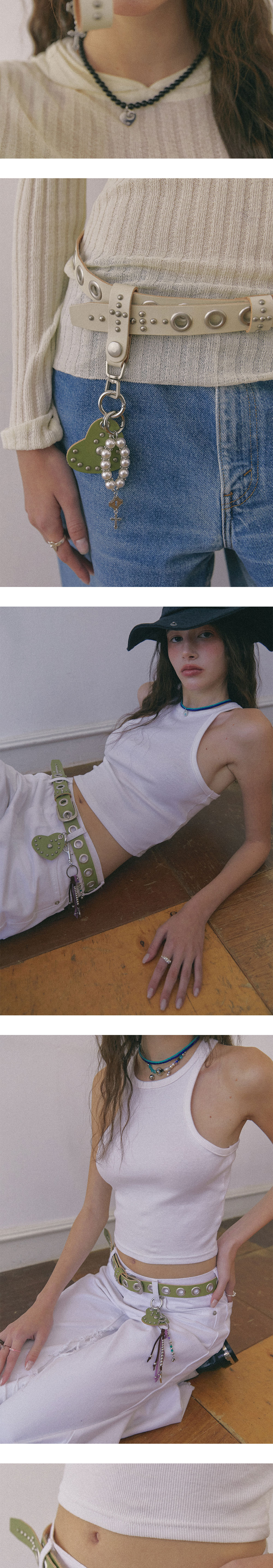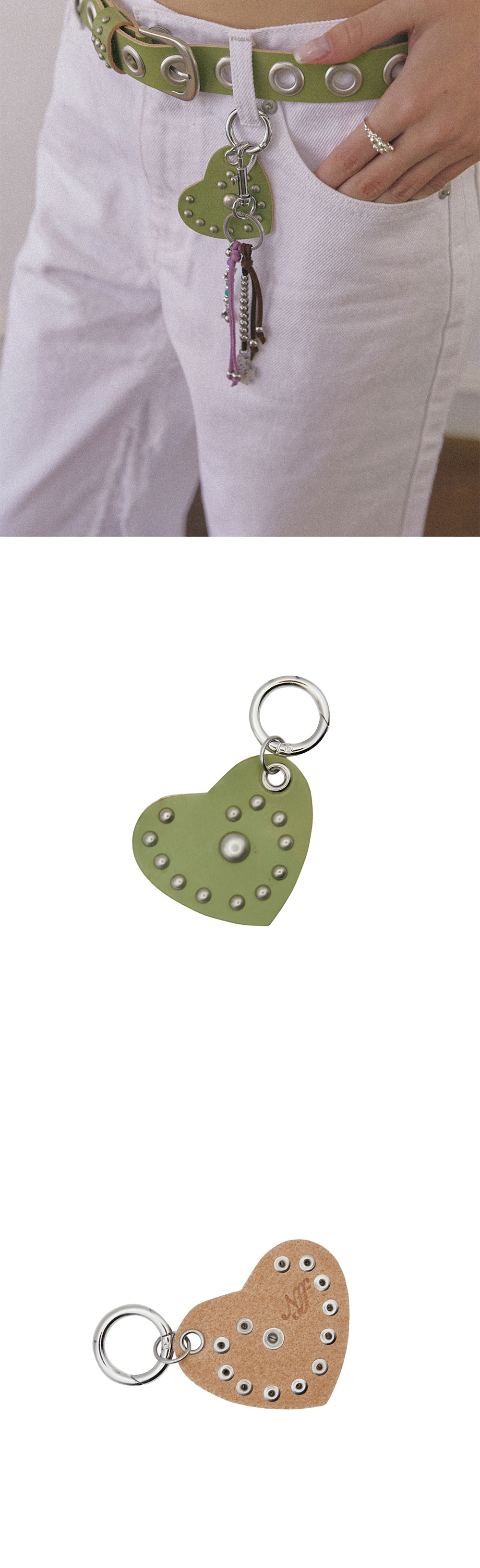엔프프 레더 하트 키링 올리브