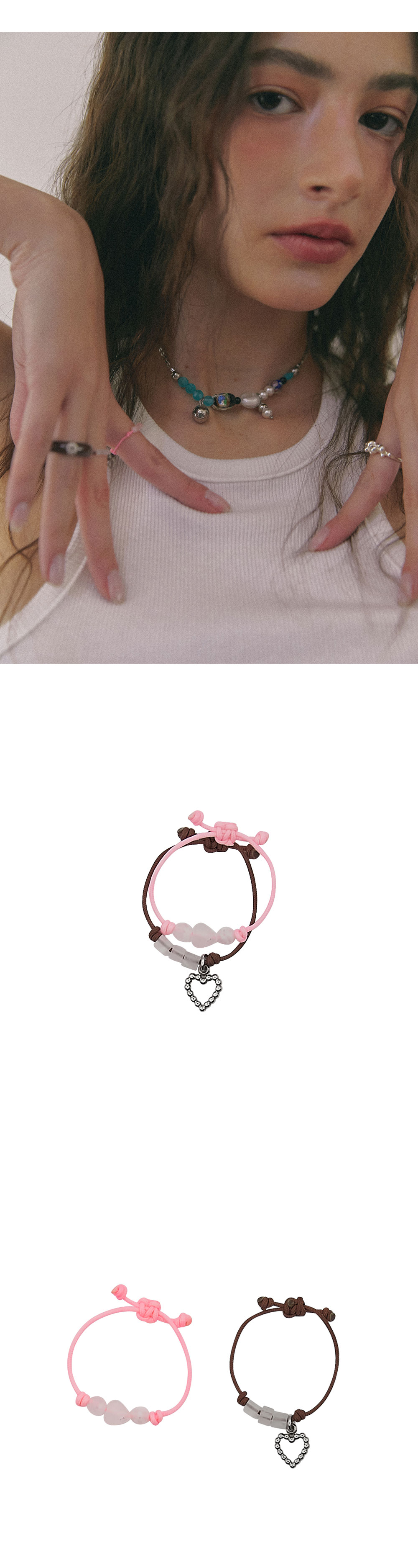 엔프프 젬 스트링 링 세트 핑크 브라운