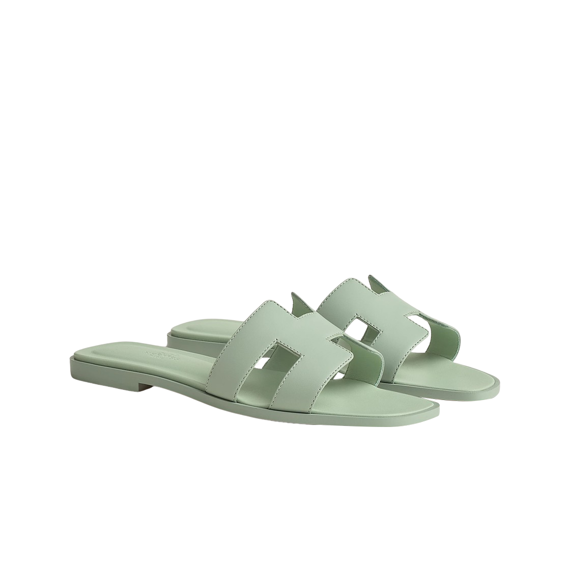 (W) Hermes Oran Sandal Calfskin & Vert D'eau