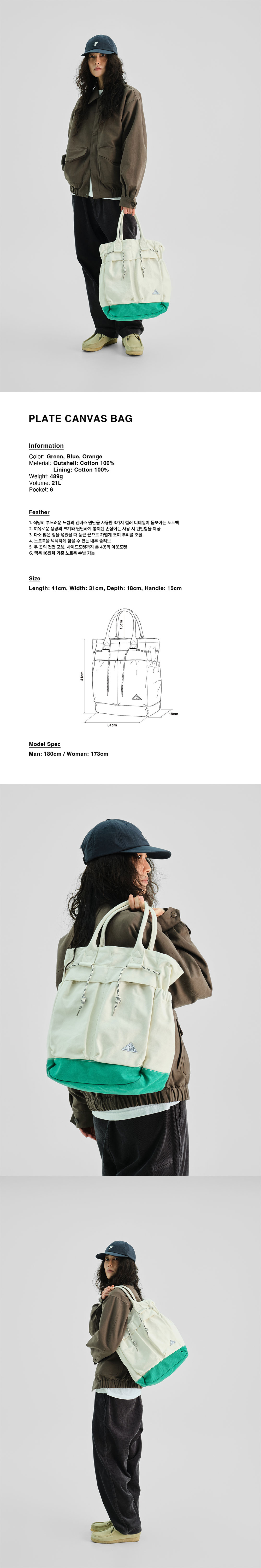 파운드 포켓 플레이트 캔버스 백 그린