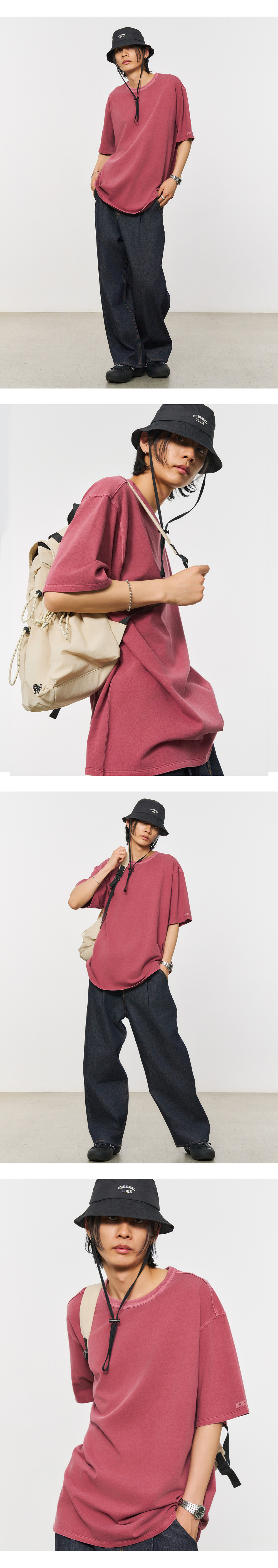 제너럴아이디어 유니섹스 피그먼트 베이직 반팔티 버건디