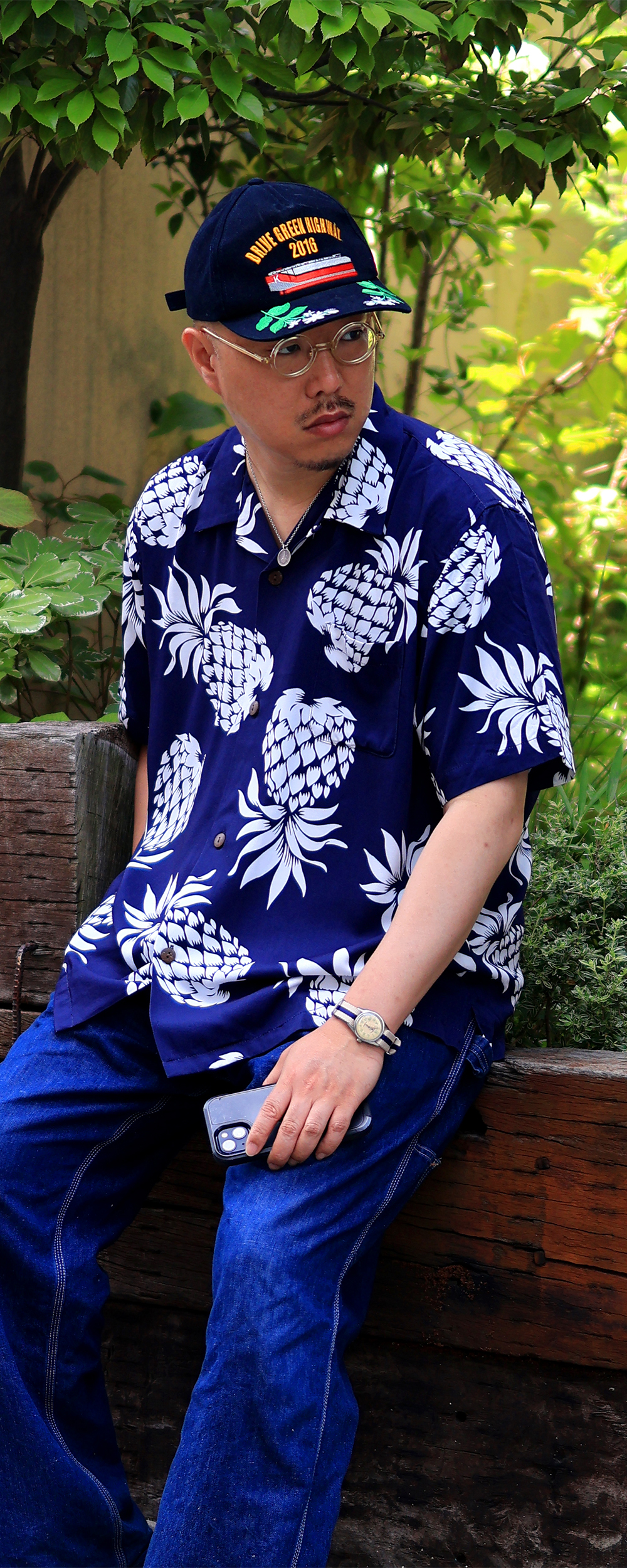 휴스턴 재팬 알로하 셔츠 파인애플 네이비 41101NV