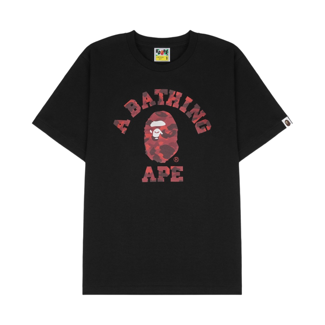 베이프 컬러 카모 컬리지 티셔츠 블랙 레드