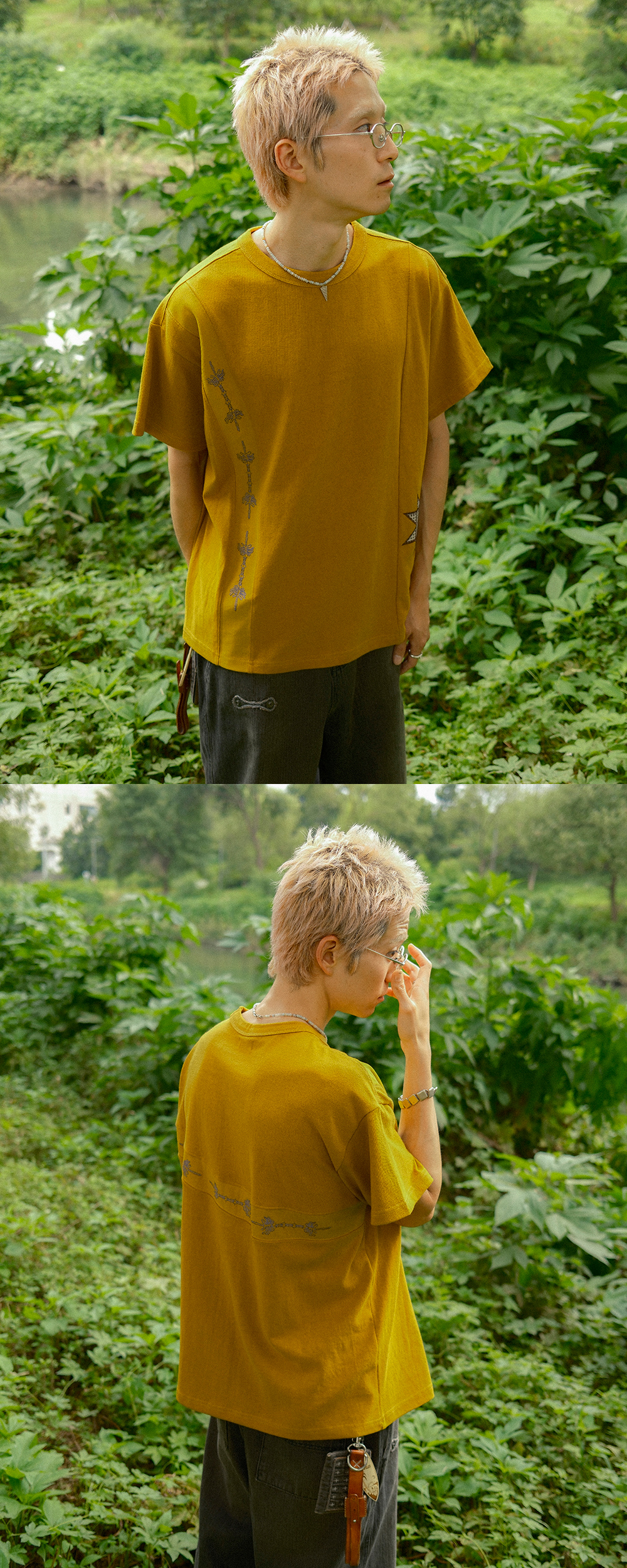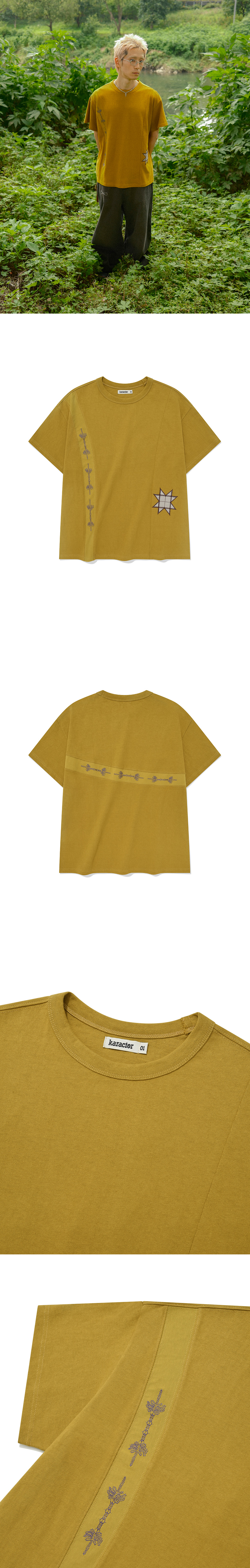 카락터 소잉 스터프 반팔 티셔츠 머스타드