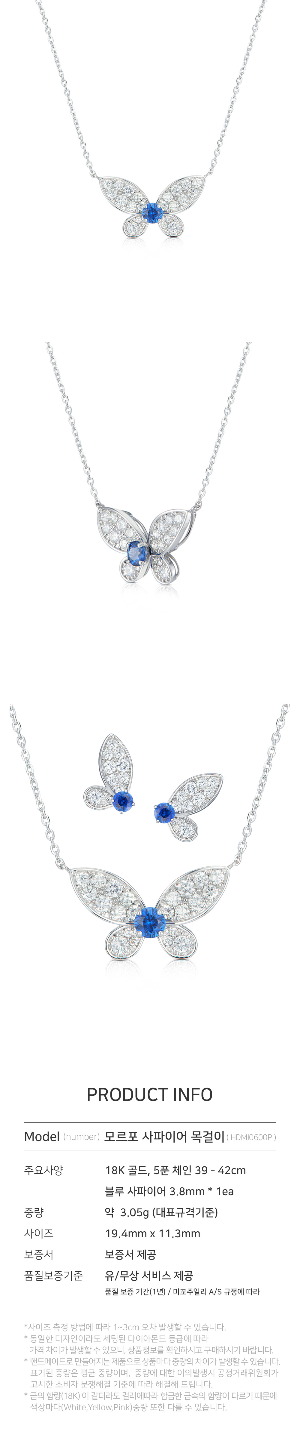 미꼬 모르포 사파이어 다이아몬드 파베L 목걸이 화이트 골드