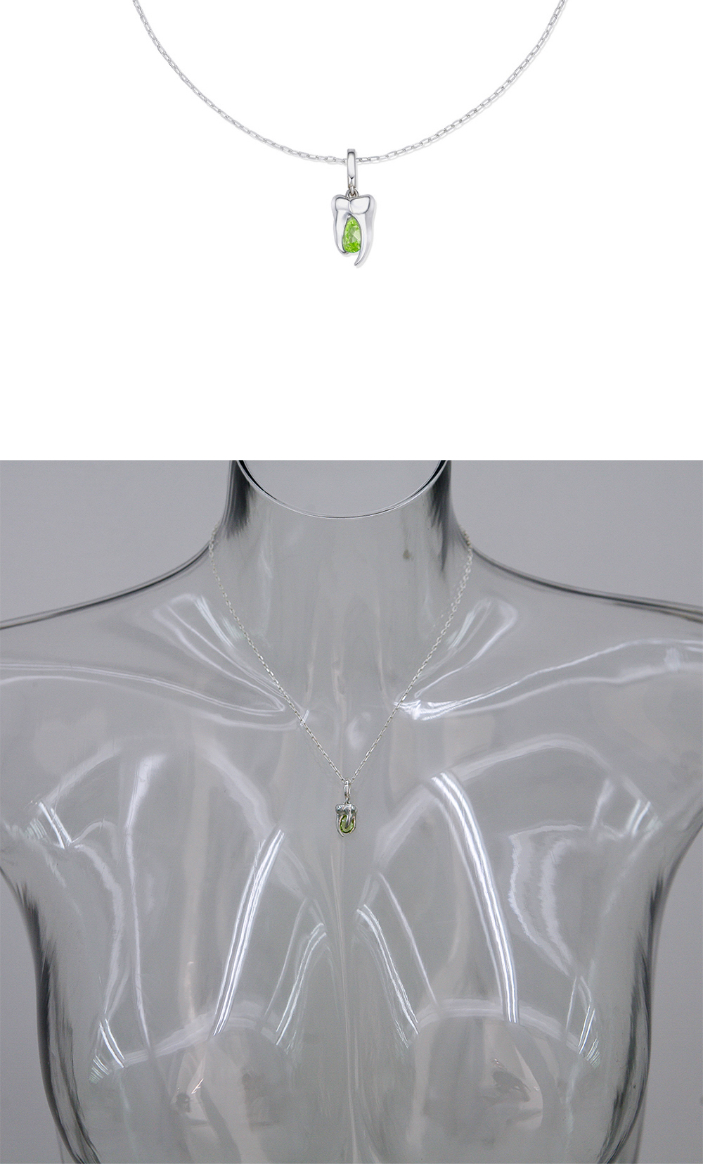 초원의 푸르름처럼 상쾌한 느낌의 AAA+ 보석급 페리도트를 물린 Teeth Jewel 입니다.