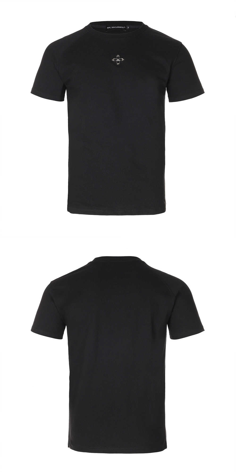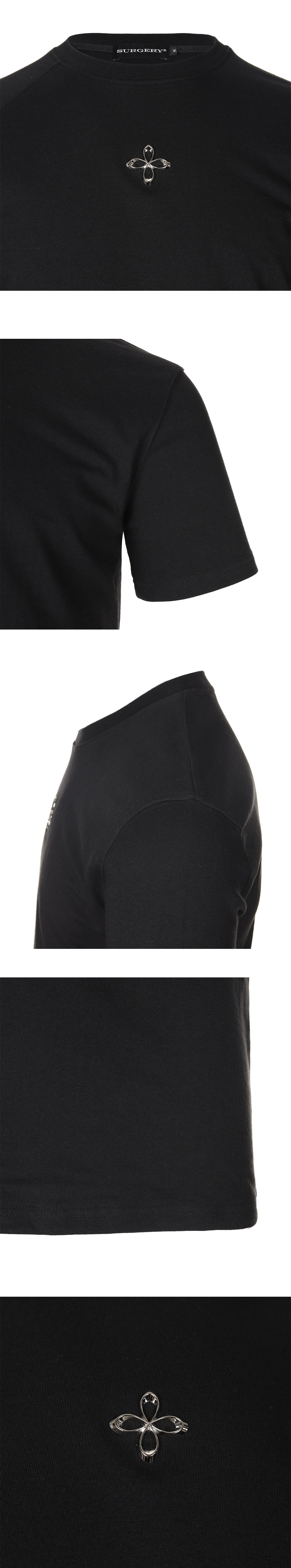 써저리 언밸런스 메탈 클로버 로고 슬림핏 티셔츠 블랙