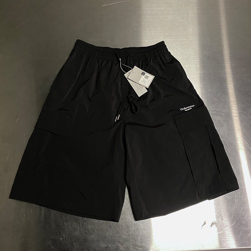 언더마이카 무.38 안티 Fxxking 로고 플레이 빅 카고 나일론 쇼츠 블랙