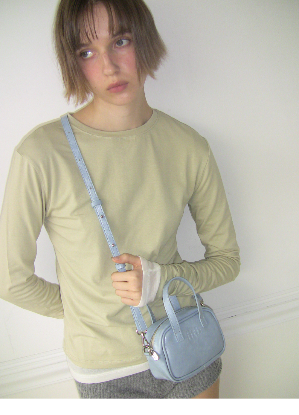 글로시한 광택감의 레더 소재로 컴팩트한 사이즈의 미니 토트백. 토트, 크로스 등 투웨이 연출 가능하도록 탈부착 가능한 스트랩이 있어 가벼운 외출 시에 적합한 제품입니다.