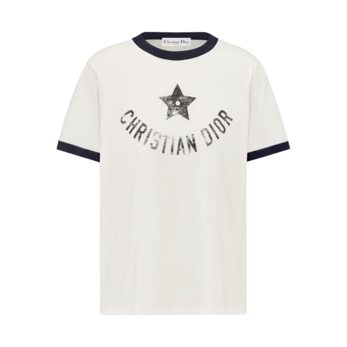 (W) 디올 리비에라 티셔츠 코튼 저지 에크루 네이비 블루