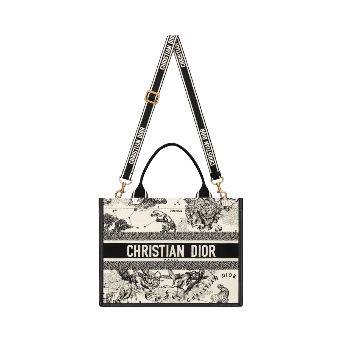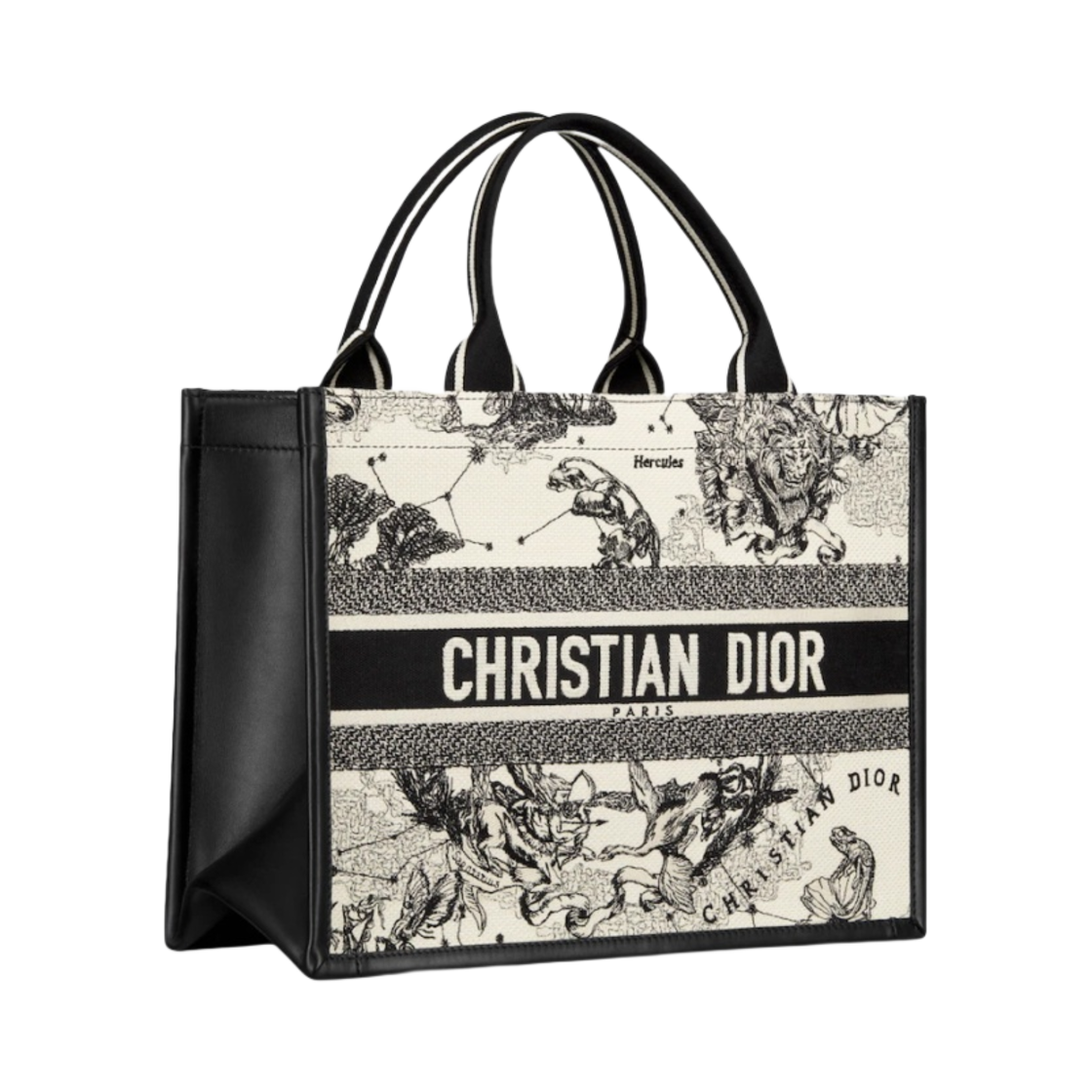 디올 미디움 북 토트백 디올 조디악 자수 카프스킨 라떼 멀티컬러 블랙