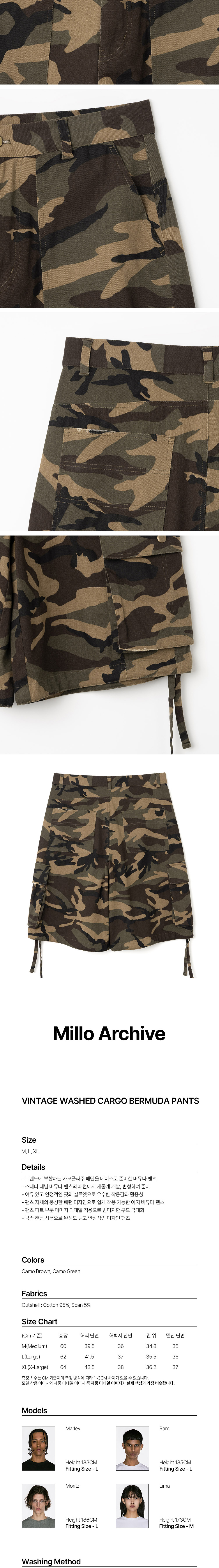 밀로 아카이브 빈티지 워시드 카고 버뮤다 팬츠 카모 브라운