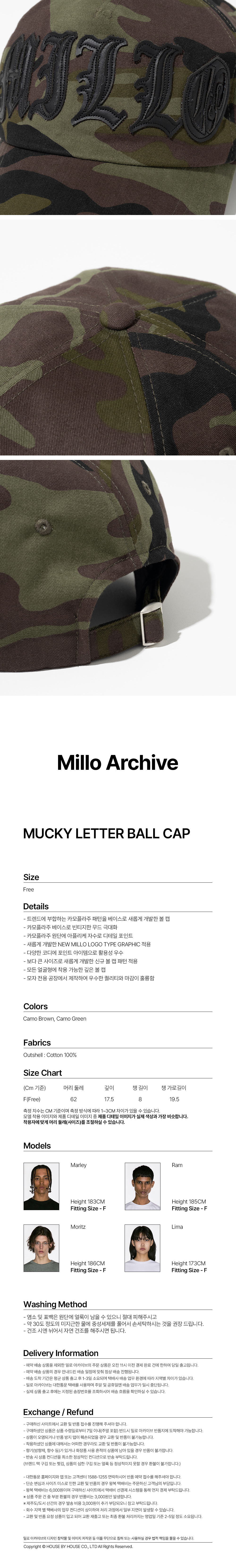 밀로 아카이브 머키 레터 볼 캡 카모 그린