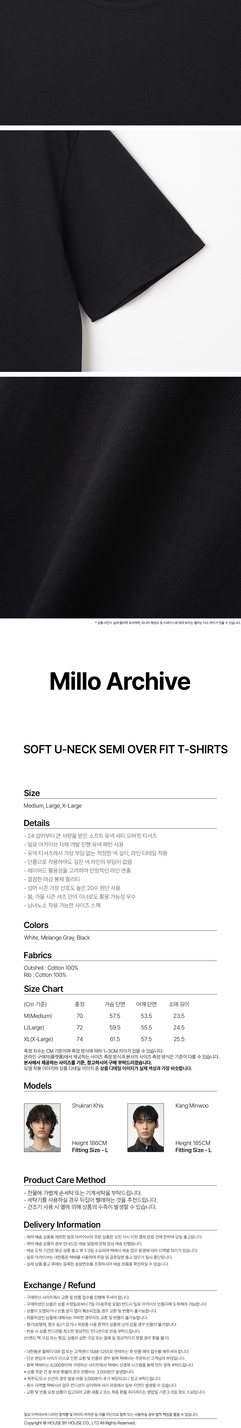 밀로 아카이브 소프트 U넥 세미 오버핏 티셔츠 블랙