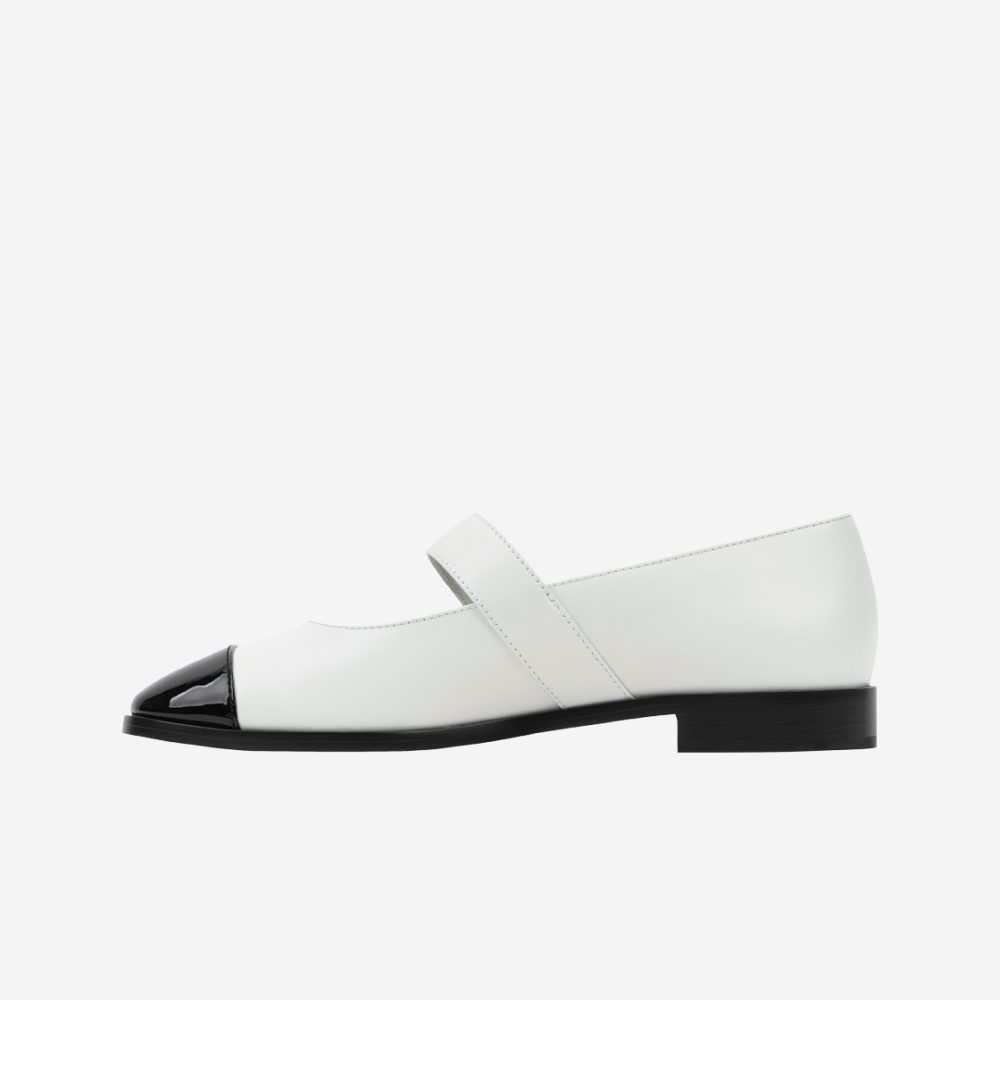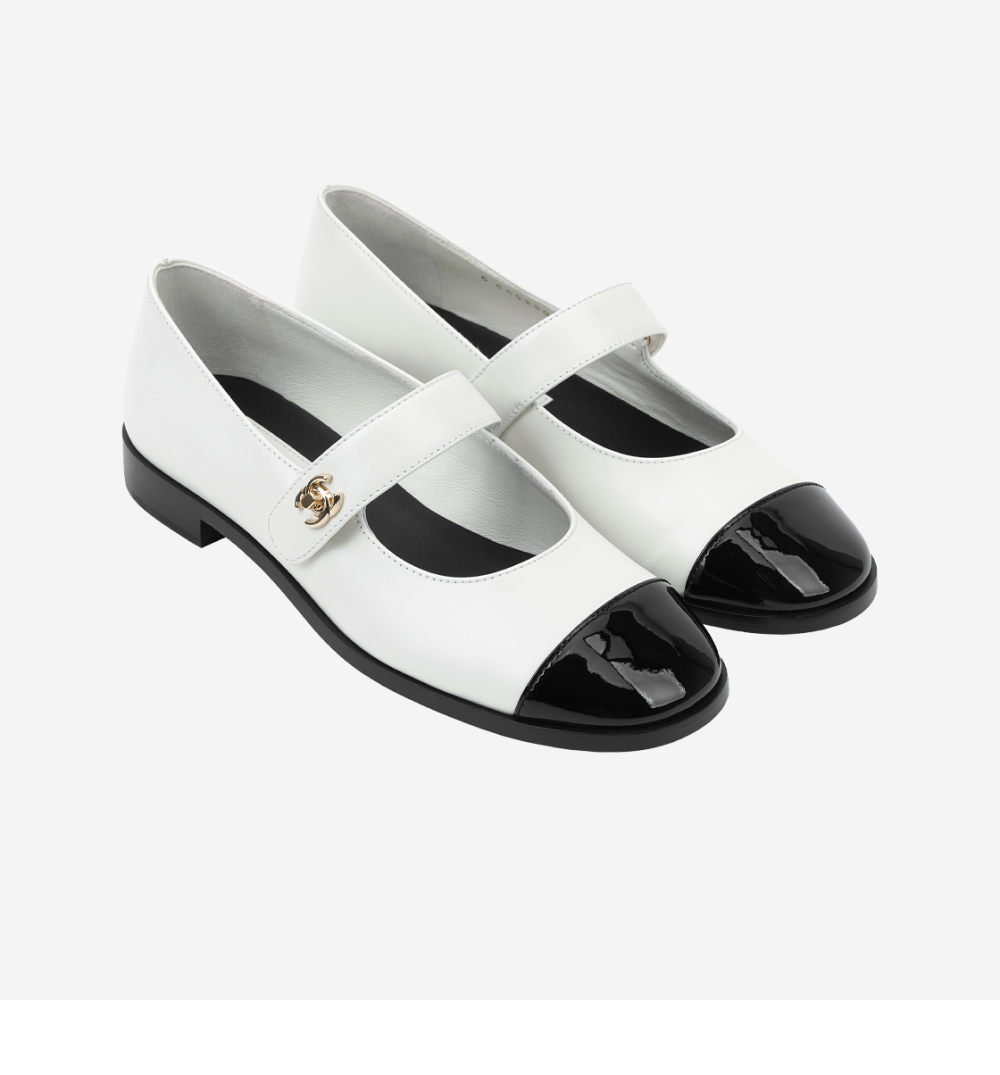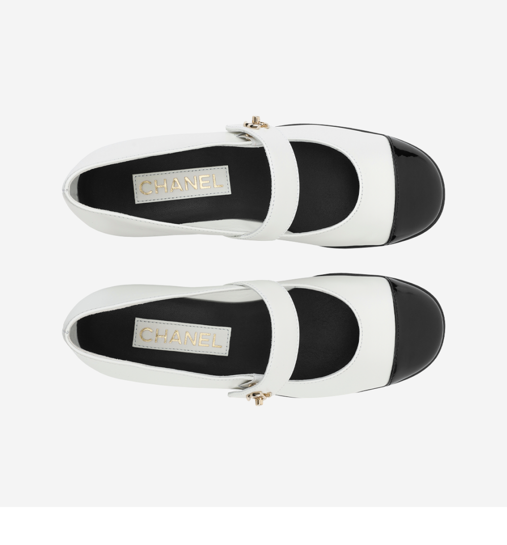 (W) 샤넬 메리 제인 카프스킨 페이턴트 카프스킨 & 화이트 블랙