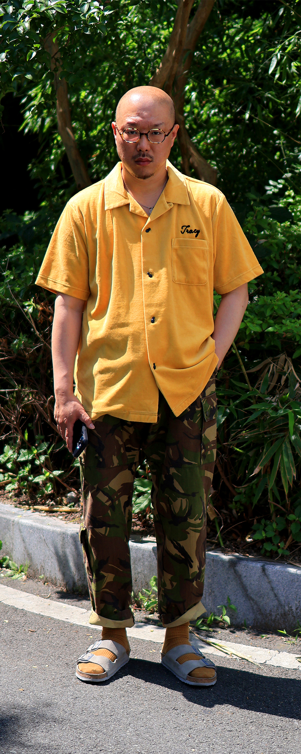 휴스턴 재팬 벨루어 볼링 셔츠 다이스 머스타드 41097MS