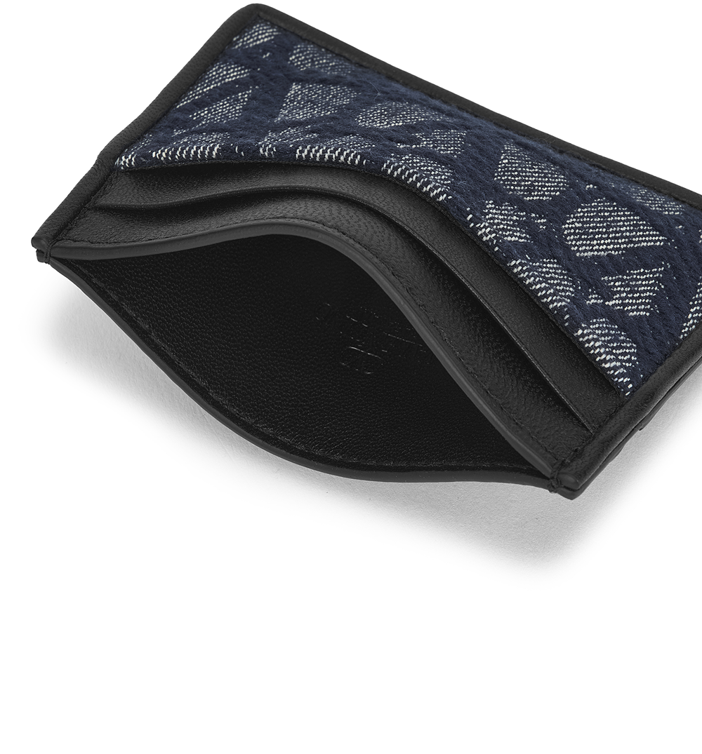 발렌티노 트왈 아이코노그래피 레더 디테일 데님 이펙트 자카드 패브릭 카드 홀더 데님 블랙