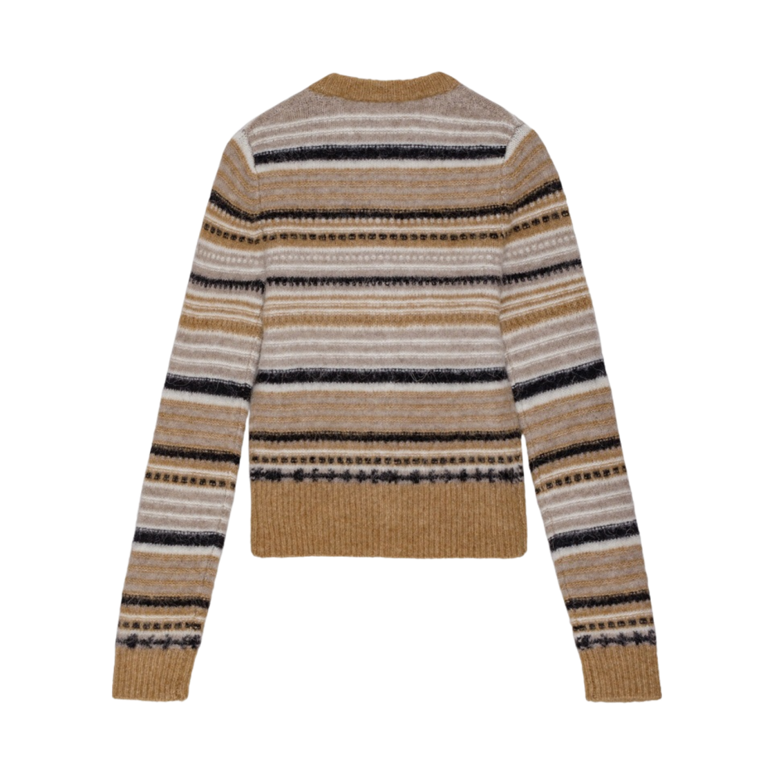 (W) Ganni Brown Striped Soft Wool Cardigan Tiger's Eye