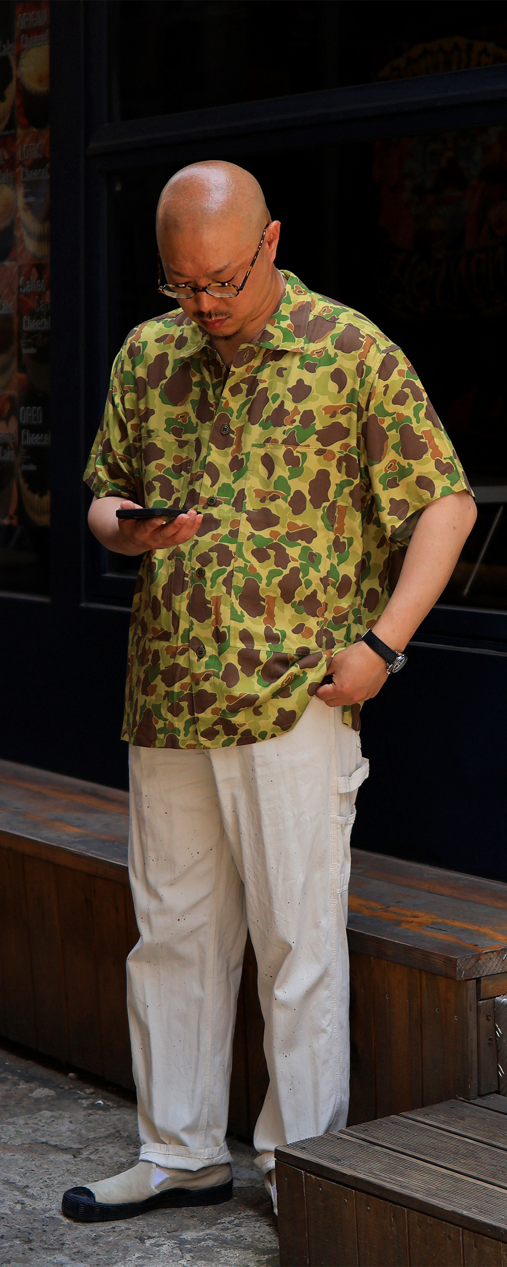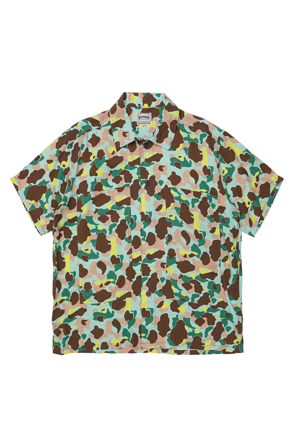 Houston Japan 41118 Military Aloha Shirt (Hunter Camo) - 02 US ARMY 풀오버 셔츠를 베이스로 어레인지한 카모플라쥬 프린팅의 트로피칼 셔츠입니다. 레이온 소재 특유의 부드러운 촉감이 특징입니다. 프론트의 양측의 포켓에는 간단한 소품들의 수납이 가능합니다.