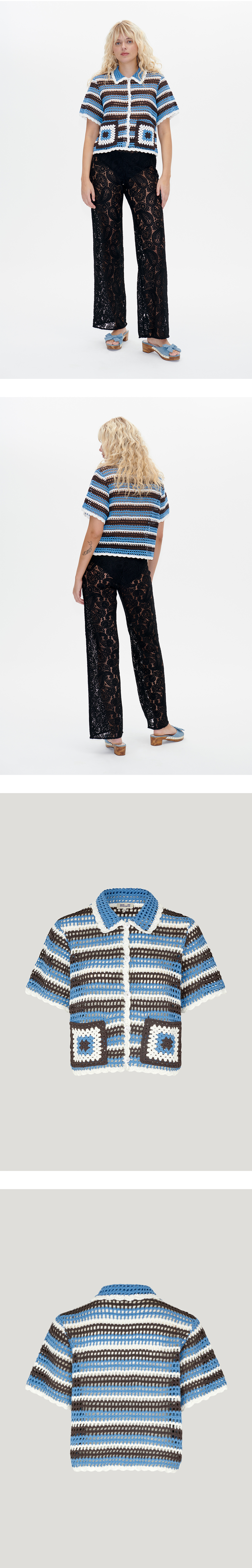 바움 운드 페르드가르텐의 클라라 애슐리 크로셰입니다. - 레귤러 핏 - 크롭 길이 - 100% 유기농 면 소재 - 2024 Pre-Autumn 컬렉션 제품 * 모델 신체 스펙 : 177cm / 착용 사이즈 : S