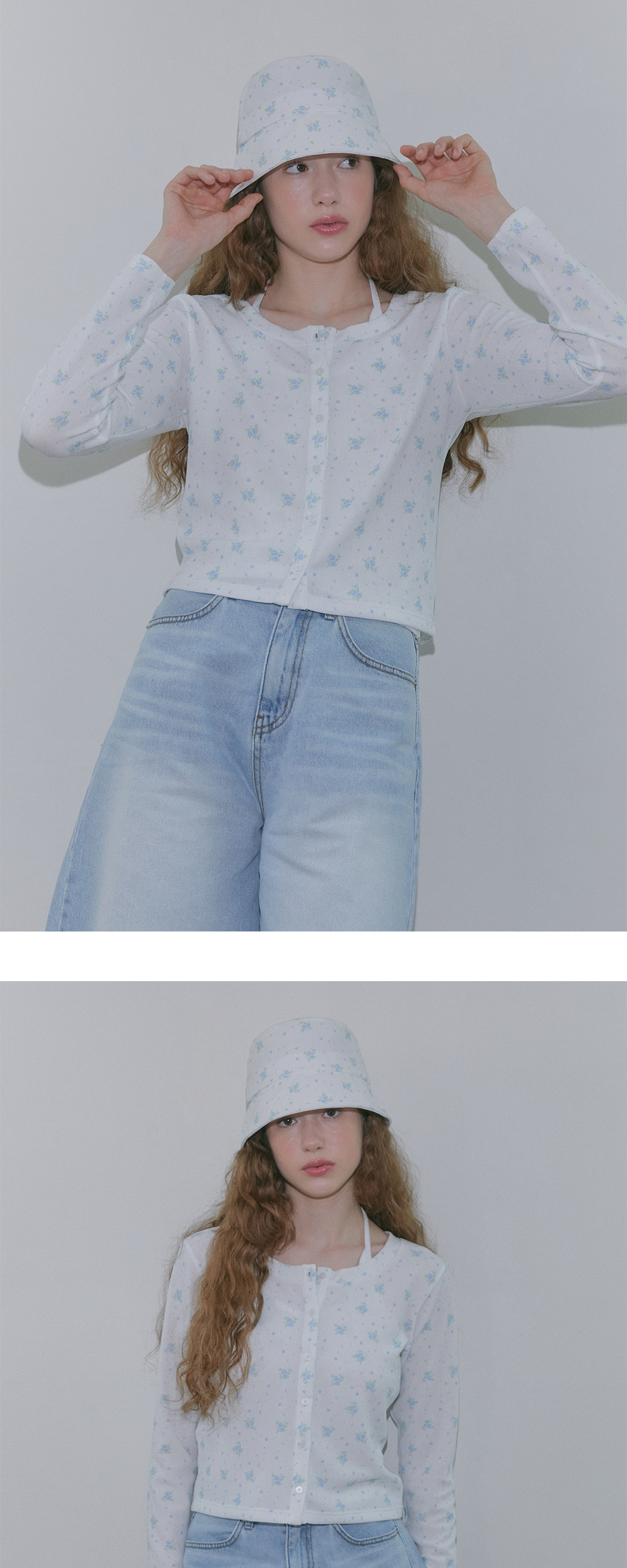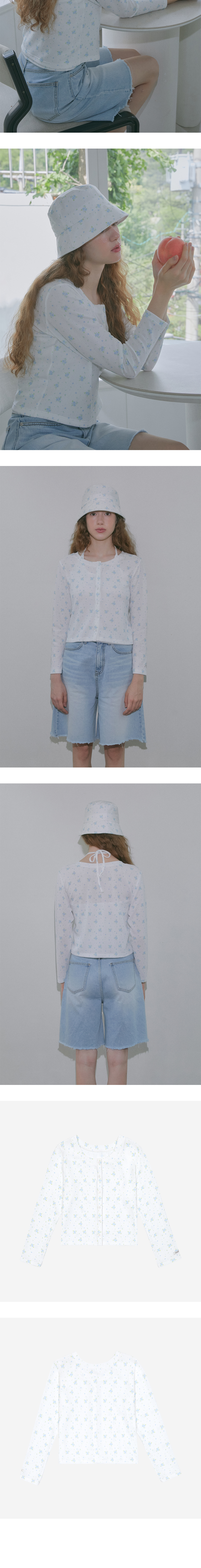 Margarin fingers 24 summer 플로럴 가디건입니다. - 직접 개발한 시그니처 플라워 패턴의 프린트 다이마루 소재 - 신축성이 뛰어나 편안한 착용감 - 소매 끝 포인트 라벨
