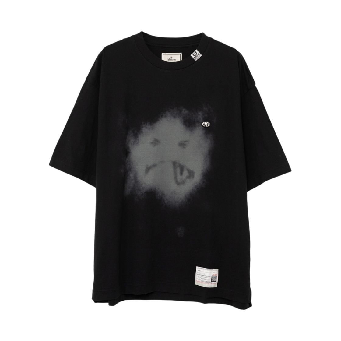 메종 미하라 야스히로 스마일리 페이스 프린티드 티셔츠 블랙
