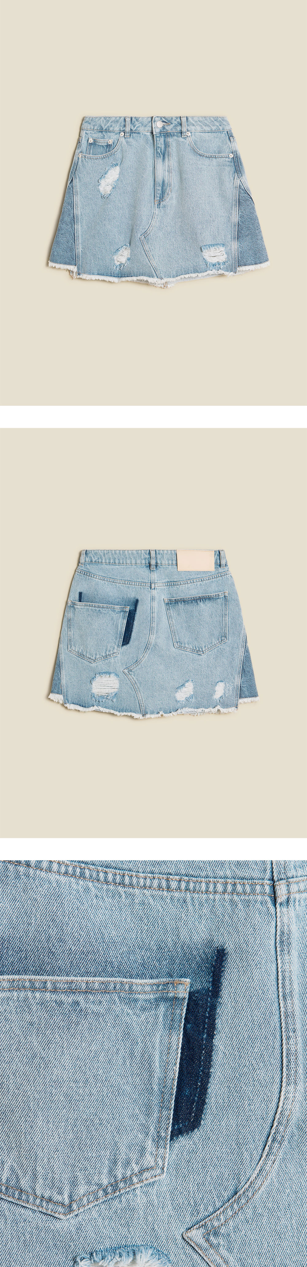 홀츠베일러 우먼 루이자 쇼트 데님 스커트는 미드라이즈 웨이스트와 짧은 밑단이 특징입니다. 밑단의 디스트레스드 디테일, 제거된 듯한 뒷주머니 디테일이 생생한 느낌을 줍니다. - A라인 실루엣 - 미드라이즈 웨이스트 - 디스트레스드 디테일 - 밑단 로우 데님 디테일 * 모델 신체 스펙 : 175cm / 착용 사이즈 : S