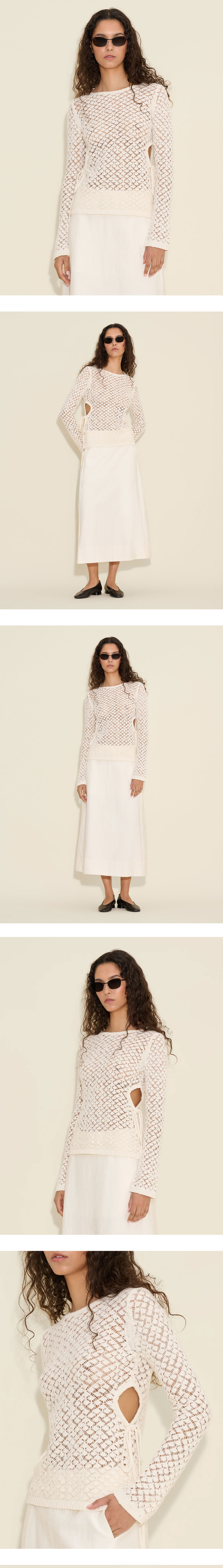 홀츠베일러 우먼 세실리아 니트 롱 슬리브는 더운 날씨에도 레이어링할 수 있도록 세미 시어 니트로 제작되었습니다. 레귤러 핏이며 허리 부분의 컷아웃이 특징입니다. - 레귤러 핏 - 라운드 넥 - 컷아웃 - 세미 시어 니트 * 모델 신체 스펙 : 177cm / 착용 사이즈 : S