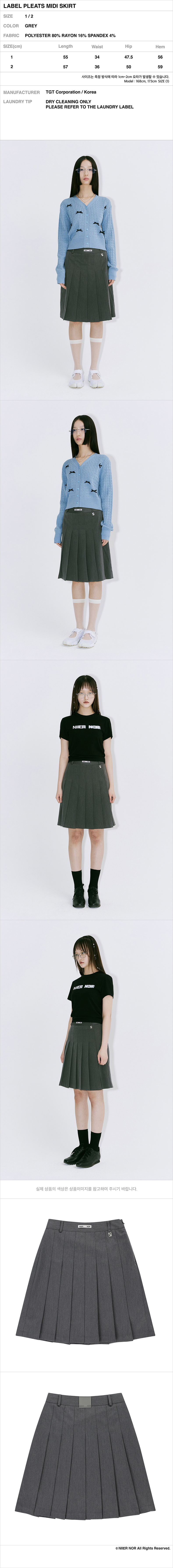 니어노어 라벨 플리츠 미디 스커트 그레이