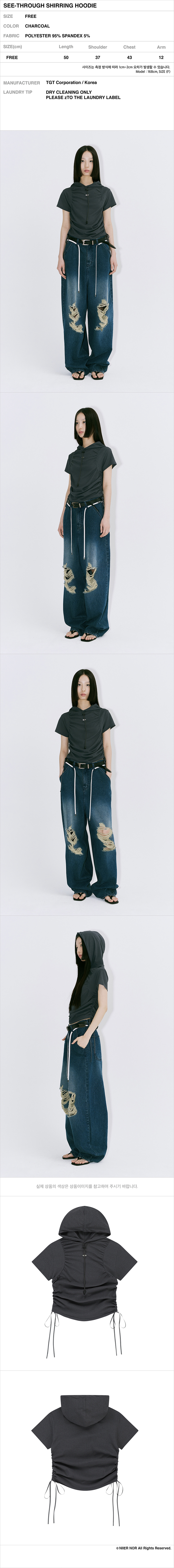 NIIER NOR See-Through Shirring Hoodie Charcoal